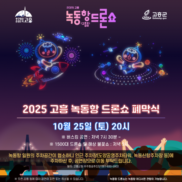 점점 더 커져가는 규모와 높아져가는 퀄리티의 드론쇼를 감상할 수 있는 고흥으로 초대합니다!
