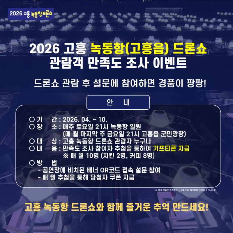 | 2026 고흥 녹동항 드론쇼 만족도 설문조사 (상품 증정) | |
